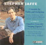Just recently I hailed the arrival of Lee Hyla’s fascinating Violin Concerto as a major contribution to the genre, and now here’s another sensational piece that deserves the widest possible dissemination among music lovers. At nearly 35 minutes, this is a major work by any standard, and Stephen Jaffe manages to fill up the time in a way that is completely satisfying both technically and formally, offering music that beguiles the ear, touches the heart, and satisfies the mind. This is not an achievement to be underestimated. Violin concertos in particular are extremely difficult to write, especially these days when composers are expected to use large orchestras with maximum coloristic variety, and this poses all kinds of problems regarding matters of balance and the relationship between the solo and the larger ensemble. To say that Jaffe has met his burden in this respect is an understatement.