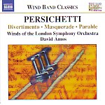 Persichetti’s band music comprises one of the most enjoyable and successful segments of his copious compositional output. In it you will find a communicative voice and range of expression often missing from his symphonies, where at times he seemed to find the seriousness of the genre inhibiting. Here, though, the challenge and discipline of creating really good music for wind ensemble has set his imagination free. Listen, for example, to the atmospheric opening of the chorale prelude O God Unseen, or to the quirky humor evident in the Divertimento and Masquerade. The largest piece here, Parable for Band, is an absolute masterpiece of the medium. The winds of the London Symphony Orchestra (and friends, presumably, unless the orchestra employs a dozen clarinets) play all of this music with appropriate aplomb under conductor David Amos. If you enjoy the symphonic band repertoire, you probably already know a lot of this music, and so you also will know that you want this well-recorded disc (originally released by Harmonia Mundi in the mid-’90s). [4/12/2006]