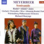 This is living proof that all re-discovered masterpieces in fact are not necessarily masterpieces. Some, like this one, aren’t even close. Meyerbeer wrote his Semiramide in 1819 (about four years before Rossini’s), and it’s clearly the work of a young, inexperienced composer. The plot isn’t exactly the same as Rossini’s, and frankly it’s even dumber–Semiramide spends the opera disguised as her own son and nobody notices. It’s a typical early 19th-century work, with arias, cabalettas, duets, and ensembles, but given Meyerbeer’s later work, we can only be amazed at the lack of interesting or catchy melodies and the paucity of the scoring.