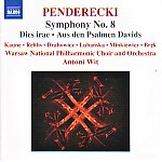 Antoni Wit’s Naxos recordings, particularly those of contemporary music, have been almost uniformly splendid, and this one is no exception. He summons terrific playing from the orchestra, has a brilliant and enthusiastic choir at his disposal, and has assembled a very impressive team of soloists, especially soprano Michaela Kaune, baritone Wojtek Drabowicz, and tenor Richard Minkiewicz. Singing this stuff isn’t easy, but they make it seem so. The sonics capture the music’s massive climaxes as well as its more ethereal moments in natural balance, and with plenty of head room. In short, this disc makes an ideal introduction to Penderecki’s art, and to his vocal music in particular. It covers his entire creative life thus far, and offers compelling evidence of just how fine a composer he was, and remains.