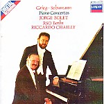 The panache and poetry distinguishing Jorge Bolet’s finest concert performances rarely emerge in these frankly enervated readings, available again via Arkivmusic.com’s on-demand reissue program. True, animation and passion transpire in both concertos’ first-movement cadenzas, while Bolet fans certainly will savor many beautifully turned phrases and subtle inflections. But where’s the yearning, conversational flow and vibrant string tone we expect in the Schumann’s central Intermezzo? Where’s the point and scintillation others bring to the Grieg first movement’s passage-work? Not here. And if we must have a slow basic tempo for the Grieg finale, Claudio Arrau’s 1963 recording with Dohnányi and the Concertgebouw provides the inner rhythm and piquant accentuation that Bolet, Chailly, and the Berlin Radio Symphony lack. Stay with our references for this tried and true coupling.
