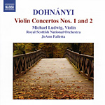 Violin Concerto No. 2 was completed more than three decades later in 1949, and right away the change in the composer’s harmonic language shows in the dissonant opening violin cadenza. But far from being atonal or modernist, Dohnányi’s work continues the tradition of consonant tonality, albeit a little stretched at the edges. This gives the music great expressive range, and the first movement surges with drama and emotion. As with the First concerto, this one also is in four movements, though they fit within the usual concerto duration (about 30 minutes–10 minutes shorter than No. 1). A charming intermezzo comes second, followed by a lovely and lyrical Adagio. The buoyant allegro finale brings the work to a happy conclusion. Again the violin writing is superb (wonderfully rendered by Ludwig), as is the accompaniment, fleshed out in the composer’s robust and colorful orchestration, and beautifully performed by JoAnn Falletta and the Royal Scottish National Orchestra. Naxos’ spacious recording has satisfying bloom, presence, and wide dynamic range. These are excellent pieces that ought to be in the modern performance repertory. If you don’t know these works, you owe to yourself to hear this disc. [5/21/2008]