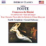 Arthur Foote’s music is pleasant, conservative, and often attractive. The best piece here is the 4 Character Pieces after the Rubaiyat of Omar Khayyam, where gentle Eastern inflections and piquant splashes of color consistently captivate the ear. The tone poem Francesca da Rimini (1890) may date from a couple of decades after Tchaikovsky’s identically titled work, but it sounds much earlier: a dull, semi-Brahmsian effort with little or nothing evocative of its subject matter aside from some generic gloominess and an agitated allegro or two.