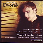 The other thing that makes this performance special is the outstanding contribution of Justin Brown and the Odense orchestra. Certainly this must be the finest accompaniment this concerto has yet received, full of color, transparency, fire, and (in the slow movement especially) sensitivity. Perfect balances and ideally natural engineering bathe the performance in a warmly sonorous glow. As a bonus, Primakov offers similarly sympathetic and characterful readings of a 30-minute chunk of the Poetic Tone-Pictures, once again making us wonder that this lovely music remains the province of Dvorák specialists. “At the Old Castle” and “At a Hero’s Grave” show Dvorák flirting with impressionism a couple of decades early, and with great success. A magnificent release, surprising in the best possible way.