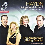 The Amsterdam String Quartet still impresses as one of the better period instrument groups currently before the public, but the devil is in the details, and this second disc of Haydn quartets isn’t quite as impressive as the first, basically because of the limitations imposed by the approach. I’m thinking of the odd things that happen to balance and tone when the first violin plays in its highest register, as in the trio of the Op. 64 quartet’s minuet (the second of Haydn’s two optional trios for this piece). Then there are those grinding, vibrato-less chords that we find in the slow movements, and slower bits of the quick ones too–moments where even sources often used to justify the sound (such as the Joachim/Moser Violin School) sing the praises of a nice ensemble vibrato timbre, specifically in quartet-playing.