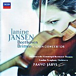 This unusual coupling works surprisingly well, God only knows why. Perhaps the Britten’s neo-classical (or Baroque) leanings and formal freedom sit well next to Beethoven’s echt-Classical language, but whatever the reason the performances of both works are extremely fine. Paavo Järvi’s expertise in Beethoven with the Deutsche Kammerphilharmonie Bremen is by now well-known, and in Janine Jansen he has a soloist who matches him for vibrancy and freshness. There’s no pseudo-profundity here; just excellent playing in the outer movements, an emotionally affecting Larghetto, and a technically confident cadenza.
