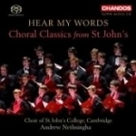 Andrew Nethsingha likes big crescendos–in the Grieg, the Parsons, the Rachmaninov, for example–which isn’t necessarily bad, except here, where they are just too big and sudden for the established dynamic context. (In Pärt’s Bogoroditse Devo the microphones do not take kindly to the loudest section–and I’m referring to regular CD-format here, not SACD). Nethsingha also favors a very slow tempo in the Parsons (Ave Maria), which grows ever slower by work’s end and causes not a few small but noticeable intonation problems. Intonation also shades a bit shy of the true pitch here and there in the very difficult Allegri Miserere–which nevertheless benefits from gorgeous high treble singing and the St. John’s Chapel acoustics. There–those are the points of caution.