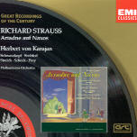 This recording of Ariadne has long been considered a classic, and it’s easy to tell why. Herbert von Karajan and the Philharmonia play Richard Strauss’ chamber-like score with great understanding and a real feel for the individual colors needed for each scene. Strauss wanted the intimacy of a solo piano as much as he wanted a full orchestral sound–each has its place here–and no matter which is present the balance is always right (Walter Legge produced). Elisabeth Schwarzkopf is probably the finest Araidne ever recorded, her voice in full bloom, her artistry never falling into artifice except during her brief moments as the Prima Donna, where it is very much in place. Irmgard Seefried’s Composer also may be the finest available, with the voice warm and rich at both ends and with an impetuosity and Romantic spirit that defines the character. Rita Streich’s little-voiced Zerbinetta is nonetheless right-on, with nice sarcasm and plenty of attitude. Rudolf Schock’s Bacchus always was the set’s weak link, and his occasional bleating still annoys, but then again, this seems to be an almost uncastable role. The supporting players are all superb, with Hermann Prey’s Harlekin a real bonus. The mono sound has stood up well.