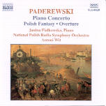 Ignacy Paderewski’s Piano Concerto belongs with the finest works of Romantic nationalism, right up there with the similar works of Grieg, Tchaikovsky, and Rachmaninov. The reasons for its comparative neglect are simply unfathomable: it has great tunes, is very well orchestrated, and sounds like a blast to play. The Polish Fantasy is equally attractive, and would make a very welcome change of pace in concert from the endless parade of Paganini Rhapsodies and other such warhorses. The principal competition for this new release comes from Koch, where Eva Kupiec and conductor Hugh Wolff turn in lyrical, affecting performances of both works (there’s also a Hyperion disc that I find comparatively uninteresting). Janina Fialkowska has more steel in her tone, and plays both works with less “Chopin” and more “Prokofiev” than her compatriot, and this suits the music, which is vintage turn-of-the-century stuff, very well. I find her approach particularly compelling in the finale of the concerto where her firm articulation and slightly more relaxed tempo gives the music more strength of purpose and direction than does Kupiec. Naxos also includes a bonus in the form of the rarely heard Overture, and Antoni Wit’s conducting is easily as fine as Wolff’s. My one reservation concerns the recording: the tone of piano becomes somewhat clattery in the keyboard’s upper octaves, and this is particularly noticeable in the final measures of the concerto’s outer movements, where Paderewski really piles on the treble. It’s a small drawback in what is otherwise a highly recommendable enterprise. [1/19/2000]
