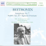 This complete Toscanini/NBC Orchestra concert may be the high point of the conductor’s 1939 broadcast Beethoven cycle. The present transfer stems from excellent “inside” source lacquers, equalized to less strident results than the more expensive edition on the Swiss Relief label. While NBC’s studio 8-H lacks the resonance of a concert hall, the engineering captures the full scope of Toscanini’s dynamic, colorful, and bottom-heavy sonority. The performances differ from their 1950s commercial counterparts. Note, for instance, the Egmont Overture’s broader inflections of tempo and phrase, and wind solos borne out of fear. The Septet was a Toscanini specialty of the house, for which he retained the solo woodwinds but used the full string section to dazzling, concerto grosso effect. You’ll also hear traces of string portamentos absent from the Maestro’s 1951 studio recording. Listeners familiar with Toscanini’s commercial Beethoven Sevenths will find the same rhythmic drive and coiled lyricism channelled through a more massively textured orchestral framework. The laughing woodwind triplet figures in the Scherzo literally dance off of Toscanini’s baton, while the conductor’s fast tempo for the Trio section atypically slackens. All admirers of the Maestro should consider this release a major acquisition.