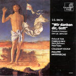 Philippe Herreweghe’s performances of these three jubilant pieces offer all of the joy and vigor that one could hope for. The balance between chorus and orchestra allows the tricky exchanges between trumpets, voices, and other instruments in the chorus “Jauchzet, ihr erfreuten Stimmen” from BWV 120 to emerge with perfect naturalness. In general, the brass playing is terrific. Check out the zesty recitative with fanfares “So herrlicht stehst, liebe Stadt!” in BWV 119, for example. The solo singing also reaches a very high standard, especially from the women. Ingeborg Danz warbles her way through the impossibly florid opening aria of BWV 120 with the same instrumental aplomb as the oboe obbligato. Deborah York’s crystal clear soprano provides a delightful contrast in the same work.