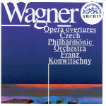 These Wagner performances sound a bit dated now (they come from 1960), but feature lively performances in that sensible, musicianly, middle-of-the-road German tradition of which Konwitschny was a typical representative. The bright, wiry tones of the Czech Philharmonic really add something distinctive to the proceedings: the opening of the overture to The Flying Dutchman, for example, benefits immeasurably from the way the trumpets “bite” in the opening measures. The Meistersinger prelude gains considerably in contrapuntal clarity from the orchestra’s non-blended sonority, and Tannhäuser compensates, in additional energy, for what it may lose in burnished nobility. Only the Tristan prelude lacks a certain warmth and sensuality. The performance of Till Eulenspiegel, excellently preserved in clear (if not noise-free) 1952 mono, is pretty wonderful, those Czech winds making something truly hilarious out of a piece that often sounds more annoying than funny. In sum: this disc offers a winning sample of Konwitschny’s art, and another fine memento of a great period in the history of this excellent orchestra.