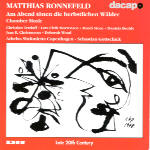 According to the booklet notes, the music on this recording represents the best from Danish composer Matthias Ronnefeld, whose relatively short career (he died in 1987 at age 28) left compositions heavily influenced by the serialism of Alban Berg (particularly his vocal works) and the pointillism of György Ligeti (chamber compositions). Grodek (1980) is for chamber orchestra, mezzo-soprano, and soprano. Both Berg and Ligeti are the main influences, with the female voices trading off the lines of a Georg Trakl poem. Capriccio (1982) is an eerie, Bergian exchange between a violin and harpsichord. Though played expertly (Christian Tetzlaff on the violin and Lars Ulrik Mortensen on the harpsichord), the overly prominent violin upsets the balance that the work requires. Vier Lieder für Dulcinea (1981) also is influenced by Berg. Although she has a sublime and eminently listenable voice, soprano Daniela Bechley gets fairly clobbered by the excessively dominant piano.