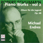 For Volume 2 of Arte Nova’s Schumann piano music survey, Michael Endres turns to the composer’s famous cycle of 43 teaching pieces, Album für die Jugend. He accepts the music’s intimate demeanor and modest technical demands at face value, and admirably scales down his playing without ever downsizing his artistry. Endres imbues each piece with varied articulations and infinite color shadings that never sound contrived or self-conscious (as Rico Gulda sometimes does in his recent Naxos version) but instead give life and meaning to the music’s simple sentiments and inner sophistication. For instance, the cross-rhythms in the “Little Fugue” are nimbly projected but never overstressed, and a hidden singer emerges underneath the ravishing half-tints and dabs of pedal in No. 14 (“Kleine Studie). At the same time, Endres is not afraid to enliven Schumann’s trademark dotted rhythms in pieces like Kleiner Morgenwanderer, yielding livelier results than Luba Edlina’s relatively bland characterizations. By pausing as little as possible between selections, Endres also brings a sense of continuity and cumulative momentum to the cycle that I’ve not noticed on other recordings. As Michael Endres’ Album für die Jugend enters the reference version charts at number one, I eagerly await his next Schumann encounter.