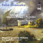 Unlike their flat recording of the First Symphony and Piano Concerto, George Hanson and the Wuppertal Symphony really wake up this time around and deliver fine accounts of all three works. In the symphony, Hanson offers substantially identical tempos to the only competition (on CPO), but presents a better-focused conception with sharper, more powerfully shaped climaxes (relatively speaking). There’s no competition for Gudrun, not that it would matter much if there were, but Hanson and his players make an extremely impressive statement in Penthesilea, generating plenty of excitement on the way to the music’s brooding resolution. MDG’s recorded sound has plenty of impact and opens out nicely in louder passages. Draeseke was indeed an uneven composer, and you might respond to the Tragica’s thin-blooded Romanticism more positively than I do, but you definitely should try to hear Penthesilea. It deserves to return to the active repertoire.