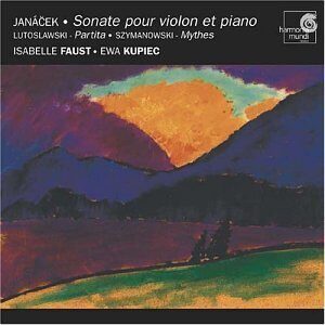 Here’s a really terrific recital, both enterprising and intelligent, that winds up being much more than the sum of its very considerable parts. Isabelle Faust and Ewa Kupiec play Janácek’s quirky Violin Sonata with uninhibited passion, making no attempt to smooth over the music’s rough edges but at the same time (as in the gorgeous second-movement Ballada) offering playing of bewitching beauty and fantasy. Kupiec in this respect proves herself a more than worthy partner to her gifted colleague. For example, her approach to La Fontaine d’Aréthuse, the first of Szymanowski’s Mythes, points the music’s rhythms with unusual care. No impressionistic fog here! The result, when combined with Faust’s exquisitely poised tracery in her upper register, must be the most characterful interpretation of this music since the celebrated Danczowska/Zimerman version on DG, and it couldn’t be more different–sharply focused and precise where the DG offers dreamy washes of sound.
